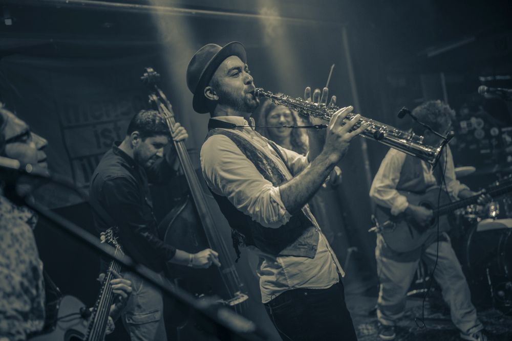 Die Absintos nehmen euch mit auf eine klangvolle Reise durch die halbe Welt: Mit einer einzigartigen Mischung aus eigenen Songs und neu interpretierten Stücken entsteht ein mitreißendes Musikerlebnis zwischen Tradition und Moderne. Während Gitarren und Kontrabass ein energiegeladenes Rhythmus-Feuerwerk entfachen, sorgen Saxofon und Geige für eine emotionale, melodische Achterbahnfahrt. Dazu kommt markanter Gesang, der von Sinti-Traditionals bis hin zu Songs von Tom Waits reicht.